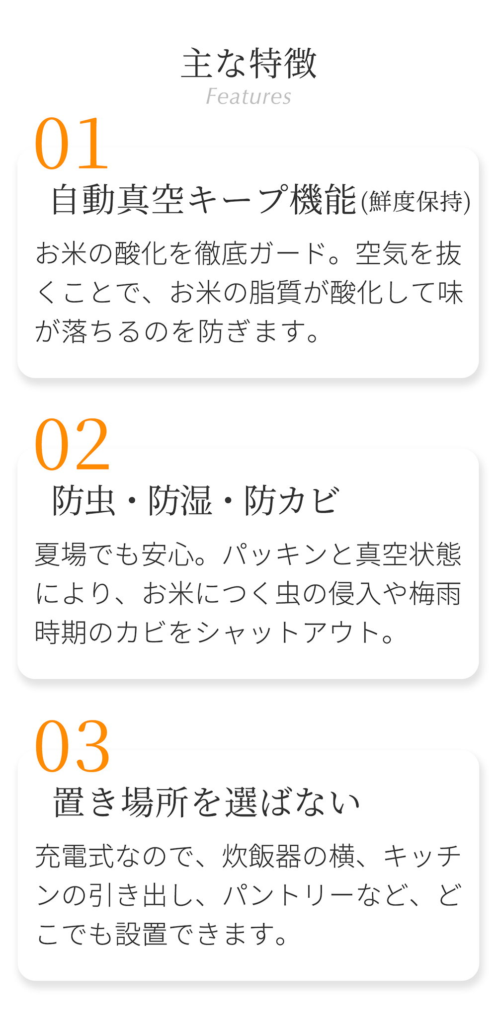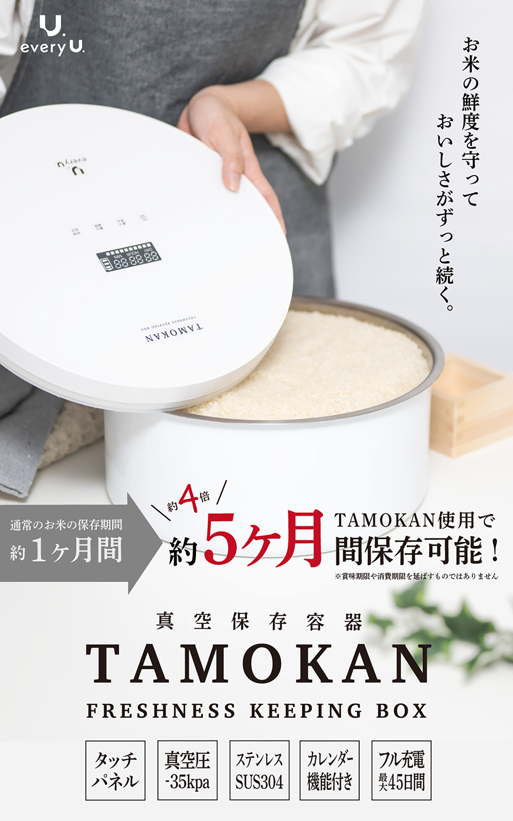 味を落とす酸化や湿気、不安な虫からTAMOKANが大切に保護します。 最後まで新米のような香りと輝きを。