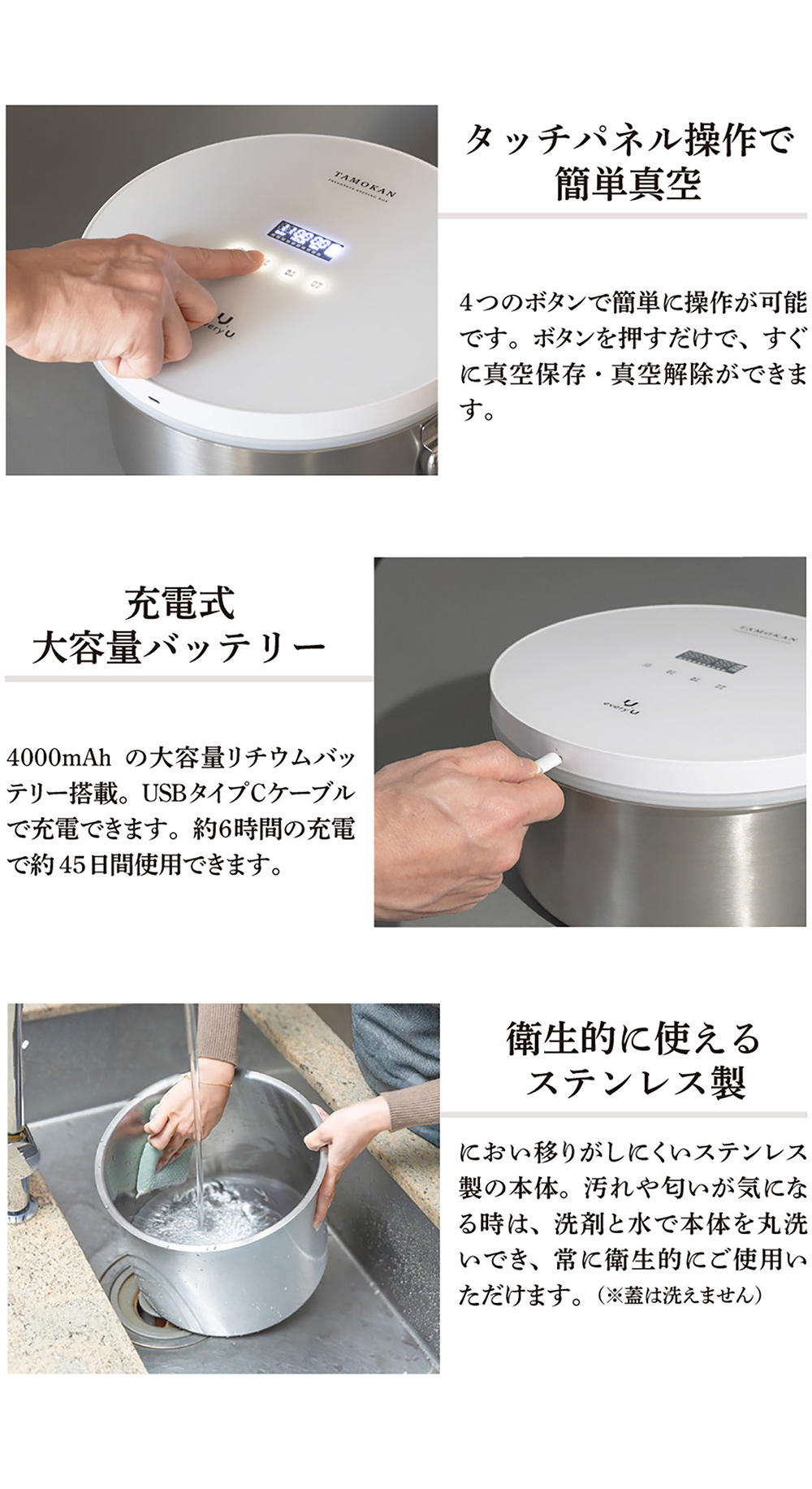 ヘルスリテ > なでしこ健康生活NHL-3とTAMOKANのセット > 真空保存米びつ TAMOKAN 【10リットル】