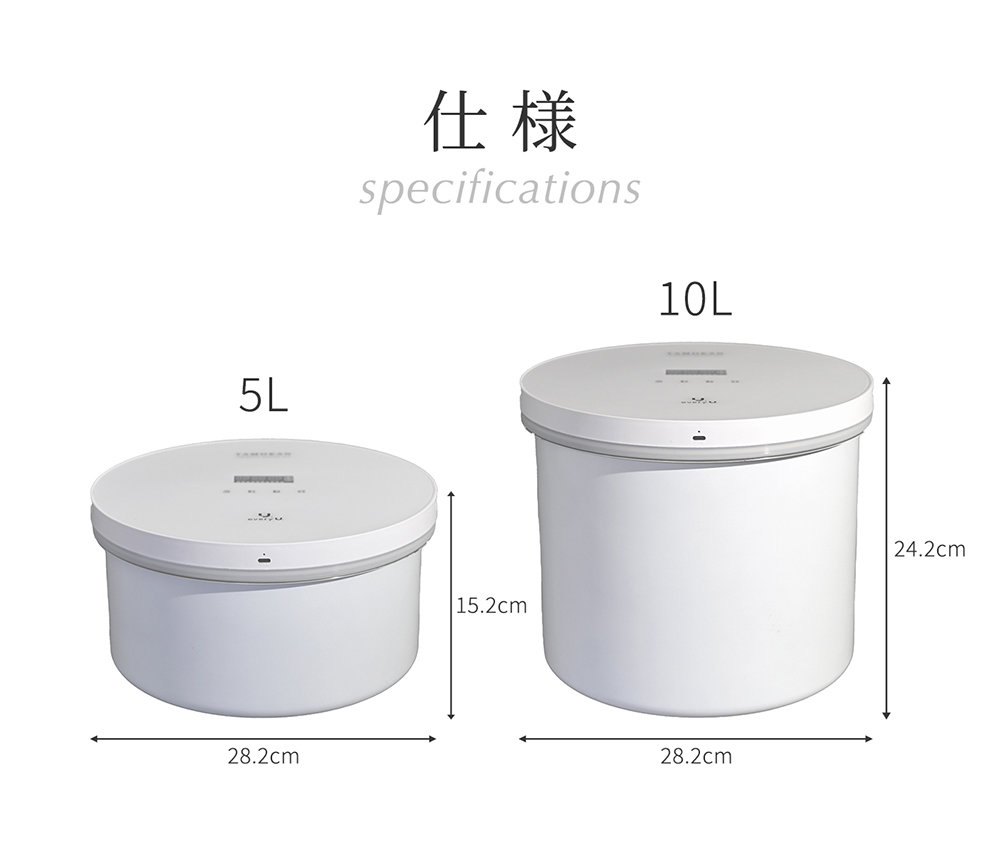 出し入れがしやすく、棚や引き出しにも収まりやすいコンパクトな5Lタイプもございます。